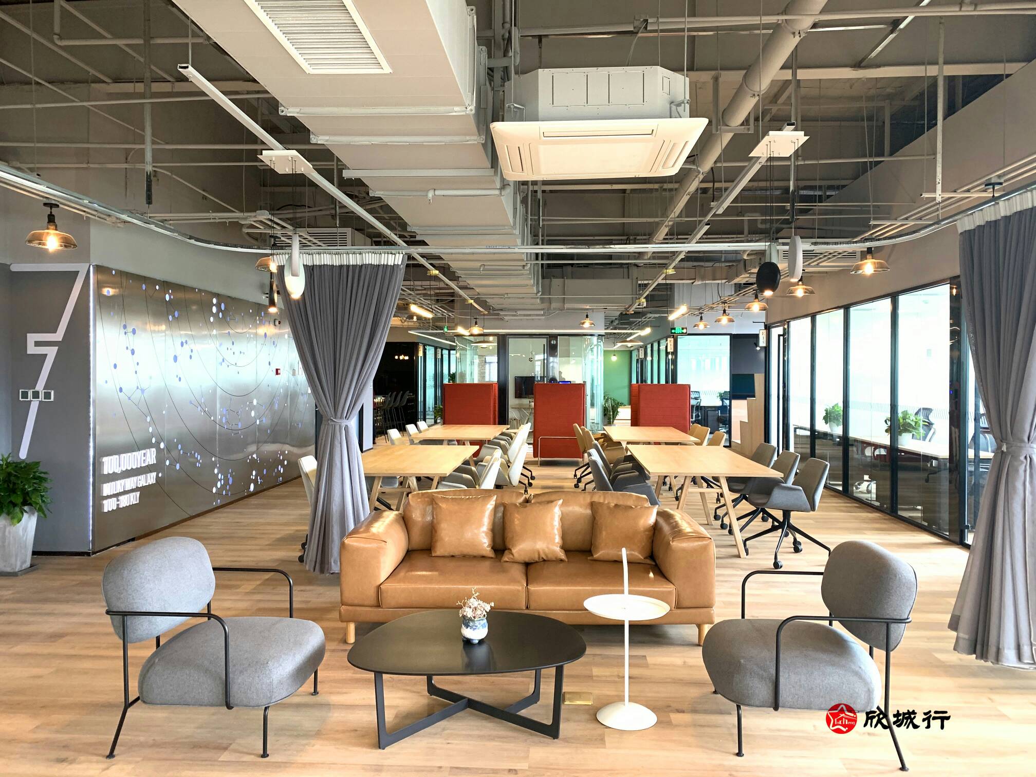 【细节展示】办公椅可鞘、大部的独立间内置休闲区、每一间办公司内有一颗果树、桌面每2人配置一盆绿植、24新风系统、VRV空调独立控制、每个工位下都配营了有浅网络、提前发至访客二维码给访套可直接扫码进入、公共区域24安保人员、卫生间超贴心用具1给访客她公24安